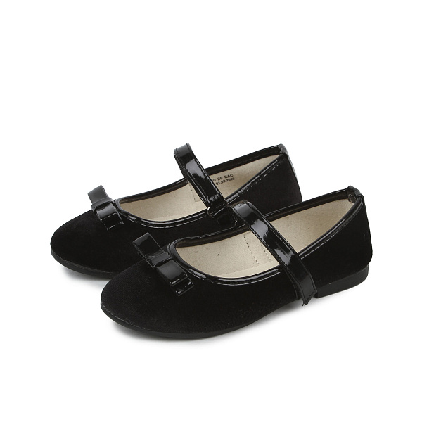 Красивые туфли для девочки отлично подойдут как для праздников, так и для повседневной носки. Их декор сочетает элементы деловой классики и праздничного оформления. Классический черный цвет разбавляется серебристыми вставками. Бантики на мысках, лакированная отделка ремешков и канта разбавляют строгость стандартной модели.