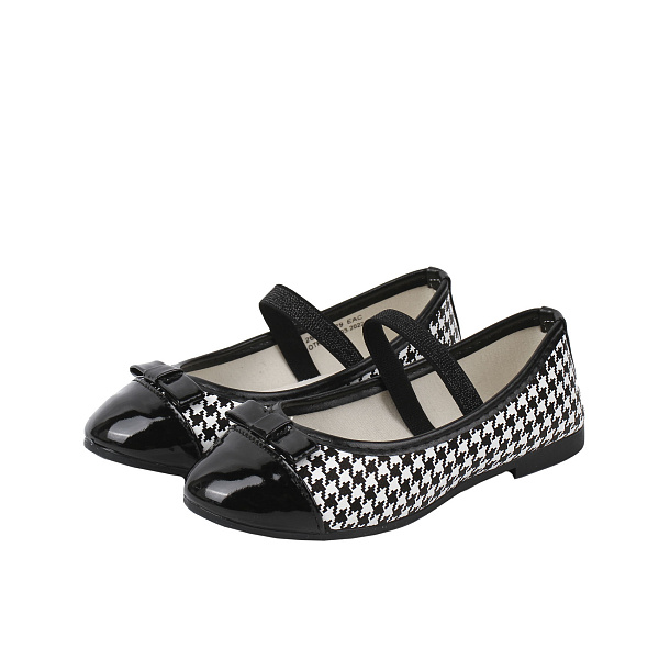 Черные лаковые туфли будут чудесным решением при выборе праздничного или школьного образа для маленькой модницы. Модель имеет комфортную застежку на липучку, поэтому даже маленький ребенок легко сможет надевать обувь самостоятельно. Поверхность туфелек изготовлена из двухцветной принтованной лаковой кожи с черным носком, а внутренняя часть пошита из мягкого текстильного материала для комфортного использования. Обувь декорирована небольшим бантиком черного цвета. Она дополнит готовый образ девочки, поскольку чудесно подходит для ежедневной носки. Подошва из ТПР не скользит на дорогах и равномерно распределяет нагрузку на ноги.
