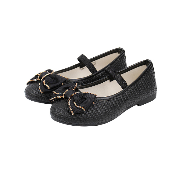 Мягкие туфельки насыщенного черного цвета идеально подойдут для ребенка младшего возраста. Они украсят ножку малыша на празднике и станут любимой обувью для повседневной носки в детский сад или школу. Материал текстильной поверхности имитирует змеиную кожу, при этом туфли декорированы большим тканевым бантом. Благодаря комфортной застежке на липучке ребенок сможет самостоятельно надевать и снимать обувь. Подошва изготовлена из ТПР, такой материал не утяжеляет туфлю и дарит комфорт в носке. На детской ножке она смотрится красиво и аккуратно. Цвет изделия: черный.