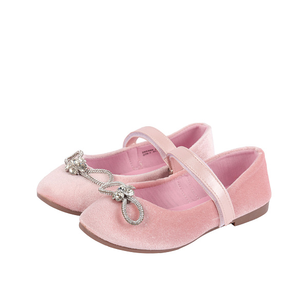 Туфли Pasito на липучке с изящным бантиком и бусинами розовые
