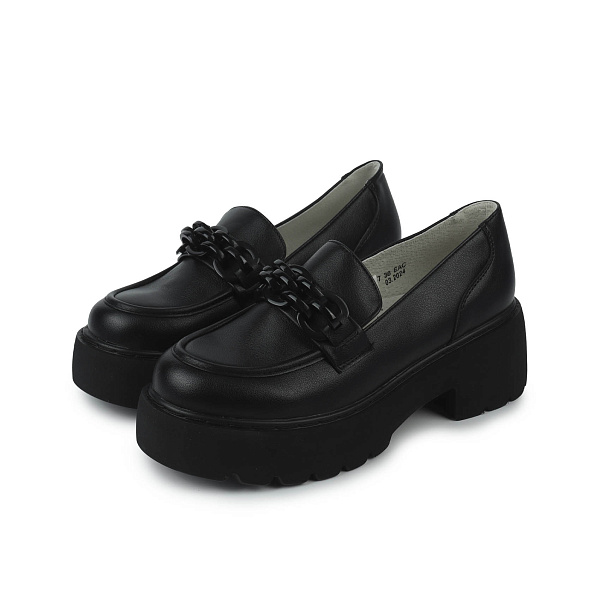 Туфли Barbaris лоферы с декором цепь на массивной подошве матовые черные
