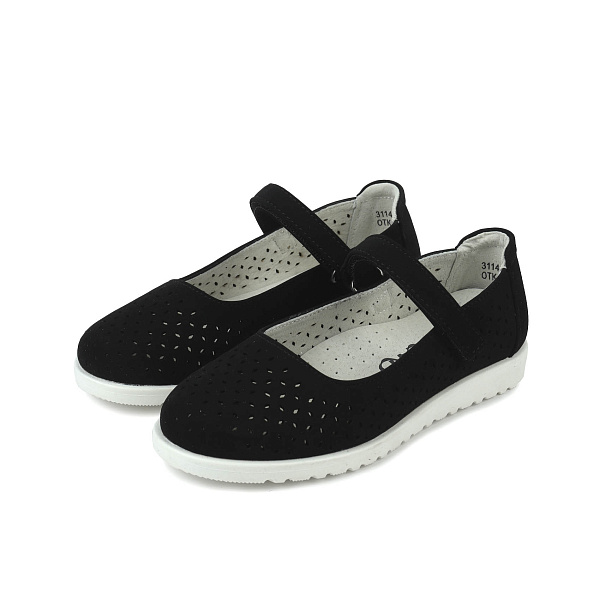 Эти элегантные туфли для девочек сочетают стиль и комфорт, идеально подходя для повседневного ношения и особых случаев. Выполненные из черного матового материала, они обладают мягкой и приятной на ощупь поверхностью. Перфорированный дизайн туфель не только добавляет визуальной легкости, но и обеспечивает дополнительную вентиляцию, что особенно актуально в тёплое время года.