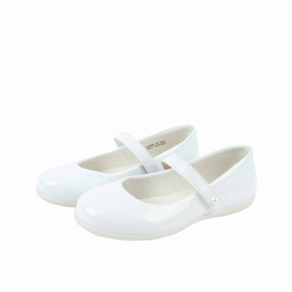 Туфли школьные Pasito классические с жемчужиной на ремешке белые