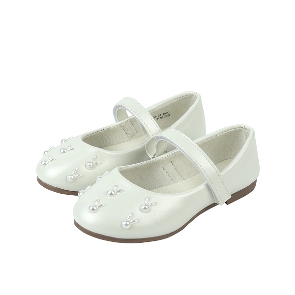 Туфли школьные Pasito на липучке с бусинами-зайчиками белые