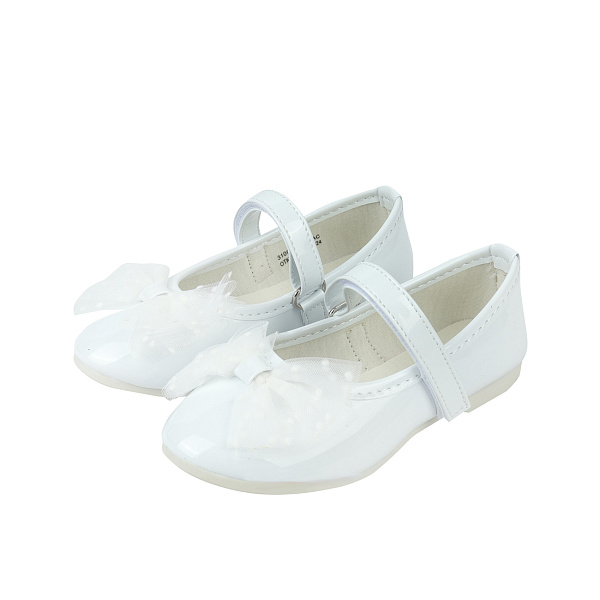 Эти элегантные туфли станут отличным дополнение к праздничному образу девочки. Бант из белой сетчатой ткани в горошек.