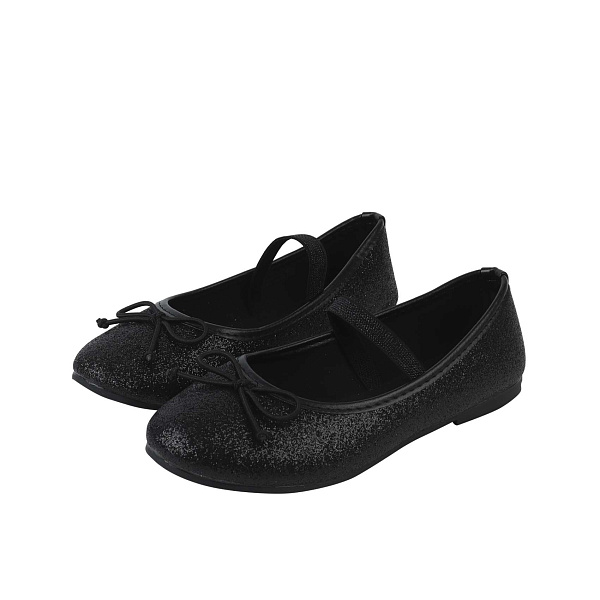 Туфли школьные Pasito на резинке с бантом-веревочкой блестящие черные