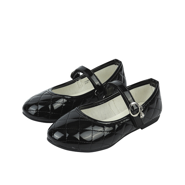 Элегантные туфли со стеганой основой украсят праздничный или школьный образ маленькой модницы. Лаковый черный цвет создает универсальный дизайн, который легко сочетается с любыми нарядами.