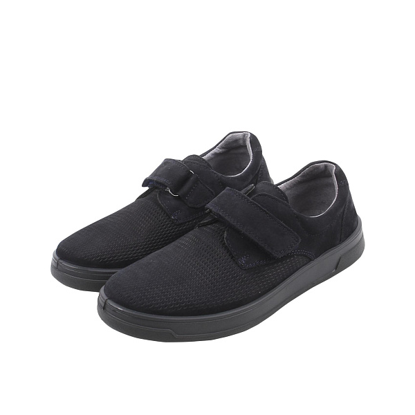 Туфли для мальчиков в школу на каждый день. Модель выполнена в простом и лаконичном дизайне. Черный цвет будет хорошо сочетаться со строгой школьной формой. Для ускорения процесса переобувания ботинки застегиваются на липучки. Туфли выполнены из прочного и износостойкого материала. Спереди предусмотрена система вентиляции, помогающая ногам чувствовать себя комфортно весь день, сидя на занятиях. Жесткая пятка и увеличенный задник фиксируют стопу в правильном положении.
