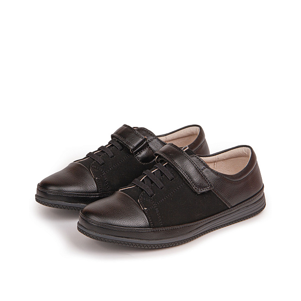 Легкие и практичные туфли для мальчика с комбинированным верхом выглядят модно и подходят как к брюкам, так и к джинсам. Модель чудесно подходит для школы. Надежная липучка упрощает процесс переобувания для ребенка. Гибкая подошва не впитывает влагу и грязь, без труда очищается от пыли, не скользит, устойчива к истиранию и износу. Материалы, использованные для изготовления стельки и верха, имеют безопасный состав, обеспечивают воздухообмен. Жесткий задник гарантирует правильную постановку стопы. Обувь изготовлена по международным стандартам качества.