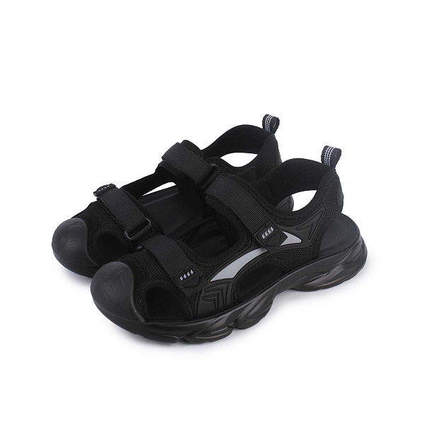 Сандалии Tiburon летние открытые на липучках с защитным носиком с серыми акцентами черные