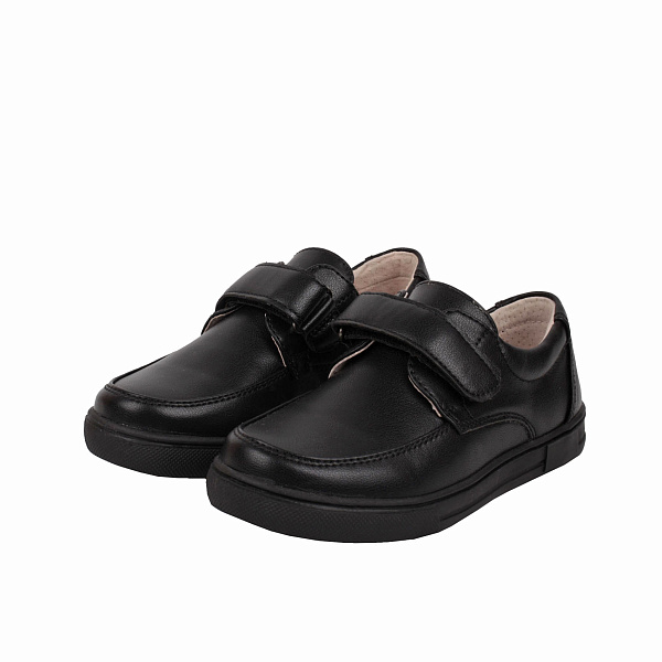 Чудесным дополнением гардероба школьника станут классические черные туфли с широким ремешком и липучкой. Ребенок по достоинству оценит комфортную посадку и закрытый задник с мягким краем. Подошва изготовлена из термопластичной резины, она не скользит, не стирается, не впитывает влагу. Подкладка и стелька из натуральной кожи дополнены искусственным верхом. Материалы обеспечивают естественную вентиляцию, долгое время сохраняют привлекательный внешний вид и потребительские свойства.