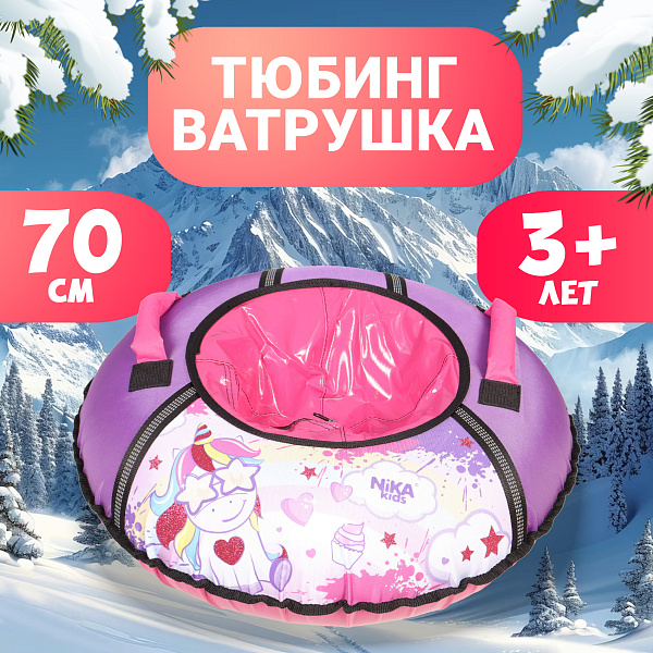 Тюбинг Единорог с рисунком и светоотражающей лентой фиолетовый 70см