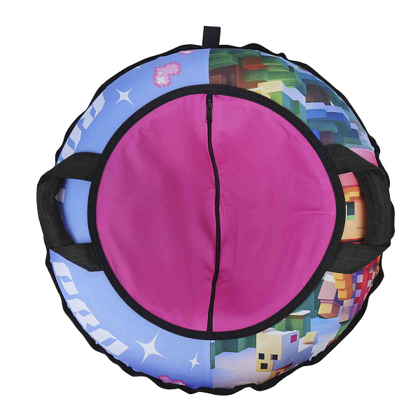 Тюбинг Rollo Pro с ярким раноцветным дизайном подходит для зимних прогулок и активных игр на снегу. Диаметр изделия составляет 65 см, что позволяет удобно расположиться ребенку. Конструкция оснащена двумя крепкими ручками, которые упрощают удержание и управление. Внутри находится прочная камера, защищенная тканевым чехлом с изображением в стиле пиксель-арт.