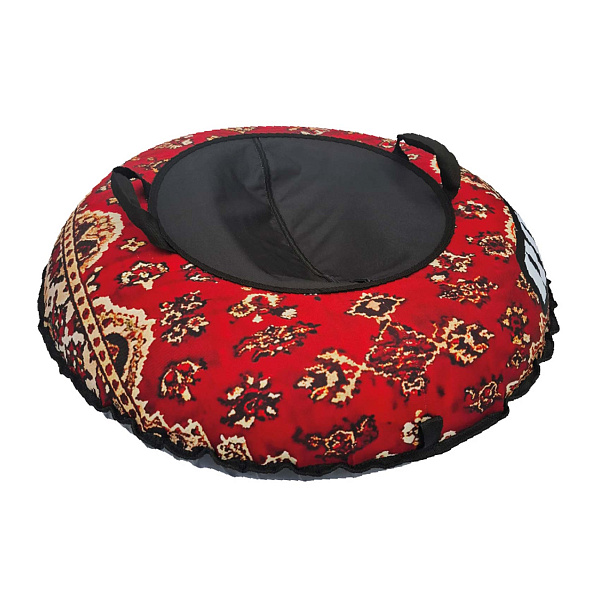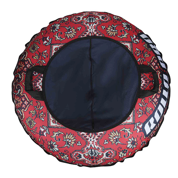 Тюбинг Rollo Pro с принтом ковра представляет собой яркое и оригинальное зимнее изделие для катания с горок. Изделие выполнено в виде круглого надувного круга диаметром 100 см с ручками для удобного захвата. Принт выполнен в стиле классического ковра с красным фоном и узорами в темных тонах. Внутреннее поле и ручки выполнены из черного прочного материала Оксфорд.