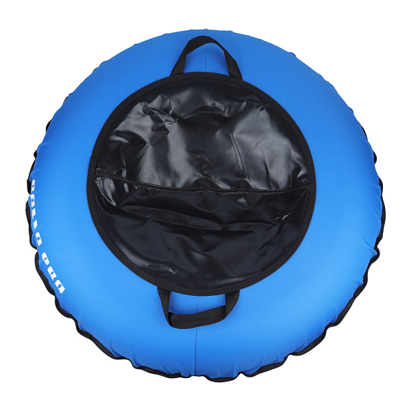 Тюбинг Rollo Pro синего цвета имеет диаметр 100 см и подходит для катания на снегу. Модель оснащена удобными ручками с двух сторон, которые помогают сохранять равновесие во время спуска. Внутренняя часть выполнена из прочного материала черного цвета, который защищает от холода и влаги. Надувной элемент внутри обтянут плотной тканью, устойчивой к повреждениям.