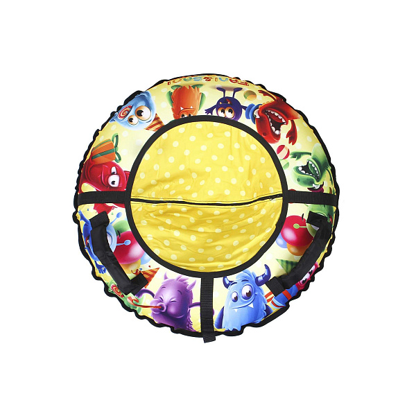 Небольшой тюбинг «Вечеринка монстров» с диаметром 80 см подойдет для самых маленьких любителей зимних развлечений. Состоит из внутренней надувной капсулы и чехла, верх которого украшает красочный рисунок со смешными существами. В сдутом состоянии ватрушка не занимает много места, ее можно хранить даже в машине. Чтобы скатиться с горки, ребенок садится в центр, крепко хватается за боковые ручки и отправляется вниз с горы за новыми эмоциями и впечатлениями.