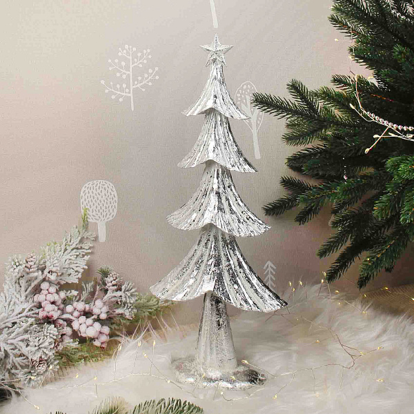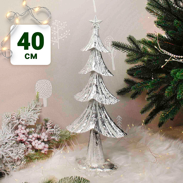 Декоративная елка в серебристом цвете и стиле лофт — стильный элемент праздничного интерьера, выполненный из металла высотой 40 см. Изделие выделяется лаконичным и современным дизайном с выразительной текстурой, придающей металлической поверхности эффект винтажного блеска. Такая елка станет эффектным акцентом на новогоднем столе, полке или в зоне декора, создавая атмосферу уюта и торжества.