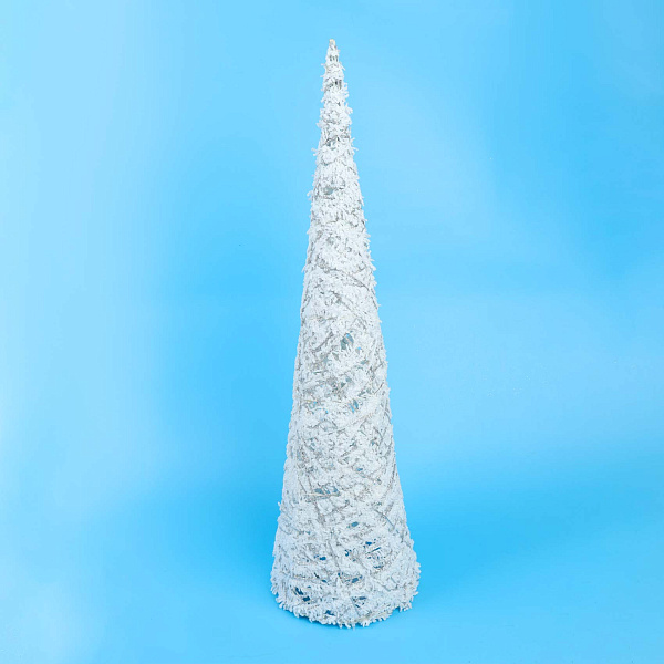 Стильный декоративный элемент в виде елки высотой 60 см, выполненный из металла с имитацией инея в белом цвете в лофт-стиле. Поверхность украшена серебристыми нитями, создающими эффект зимней сказки и добавляющими изящества изделию. Модель оснащена подсветкой, работающей от батареек типа АА, которые не идут в комплекте и приобретаются отдельно. Легкая и прочная конструкция позволяет использовать изделие в различных интерьерных решениях, создавая атмосферу уюта и праздничного настроения.