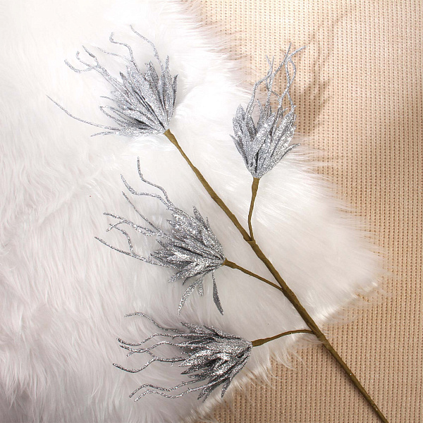 Украшение декоративное Ветка экзотическая с серебристым глиттером винтаж 60см