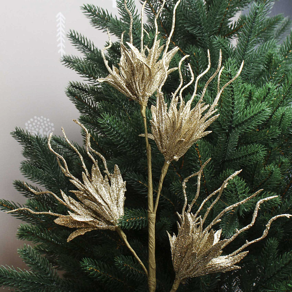 Украшение декоративное Ветка экзотическая с золотым глиттером винтаж 60см
