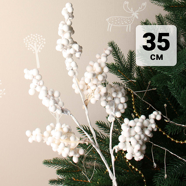 Декоративная ветка с ягодамии в стиле хюгге выполнена из пластика в матовом белом цвете. Высота изделия составляет 35 см. Этот уютный и стильный элемент декора идеально подойдет для создания теплой и гармоничной атмосферы в интерьере, новогодних флористических композиций или праздничного оформления. Благодаря естественному матовому оттенку и красивой форме, ветка станет выразительным акцентом в декоре.