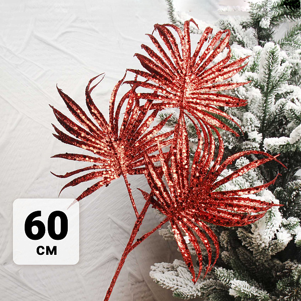 Украшение декоративное Ветка пальмовая рапис с глиттером красная лофт 60см