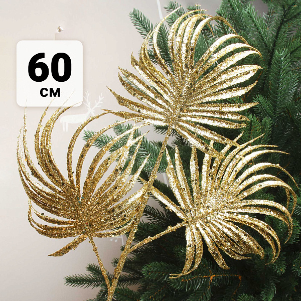 Украшение декоративное Ветка пальмовая рапис с золотым глиттером лофт 60см