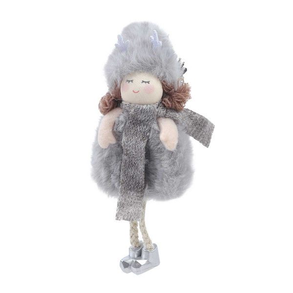 Украшение елочное Ангел в меховом наряде разноцветный 16см в ассортименте