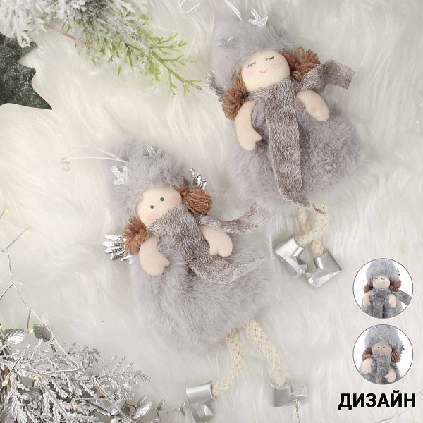Украшение в виде ангела выполнено из текстильных материалов в серой цветовой гамме. Высота изделия составляет 16 см. Ангел одет в пушистое серое платье и шапочку с маленькими рожками, дополненный мягким шарфом и серебристой короной на голове. Лицо ангела украшено аккуратной вышивкой с улыбающимся выражением, а фигурка оснащена петелькой для подвешивания. Такое украшение подарит уют и праздничное настроение любому интерьеру.