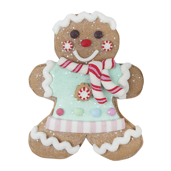 - Форма: пряничный человечек с яркой одеждой и шарфом