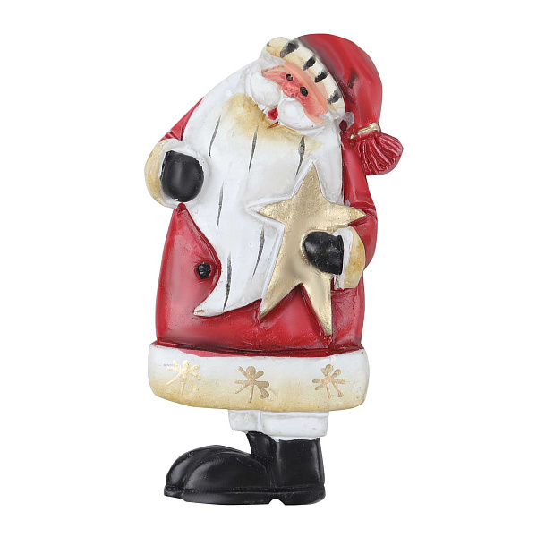 Елочное украшение в ретро-стиле высотой 6,5 см выполнено из прочного полирезина. Изделие украшает Дед Мороз в классическом красном костюме с белой бородой и черными сапогами, в руках он держит золотую звезду. Украшение имеет винтажный дизайн с легким состаренным эффектом, который придает изделию особое очарование. Оснащено пеньковой петлей для удобного подвешивания на елку, создавая теплую и праздничную атмосферу.