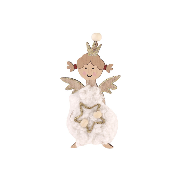 Украшение елочное Девочка кудряш деревянное 12см в ассортименте
