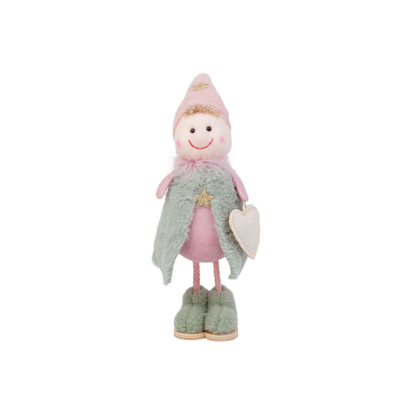Куклы-девочки очаровательны по-своему и умиляют выражениями своих нарисованных лиц, а также смешными прическами и забавными шапками. Ножки куколок зафиксированы на деревянной платформе, которая позволяет установить куколку под елкой без дополнительной поддержки. На игрушке присутствуют мелкие детали и фурнитура, не рекомендуется для детей младше 3 лет.