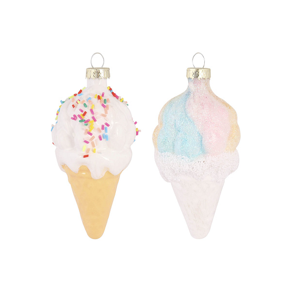 Украшение елочное Эскимо стеклянное 12см в ассортименте