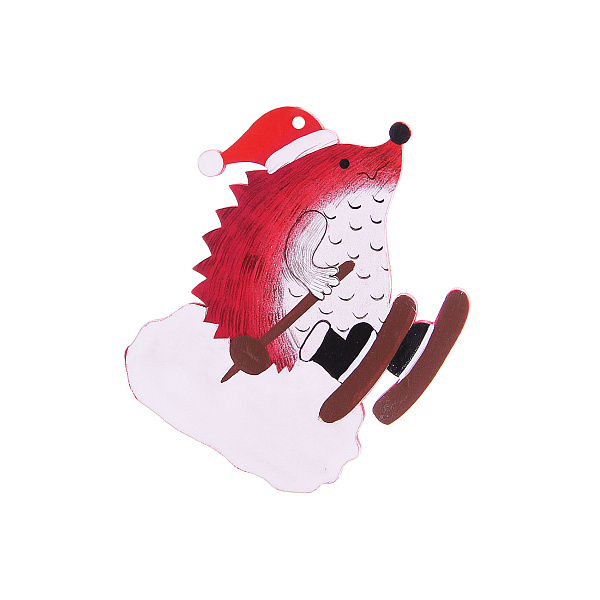 Украшение елочное Ежик лыжник деревянный в ассортименте