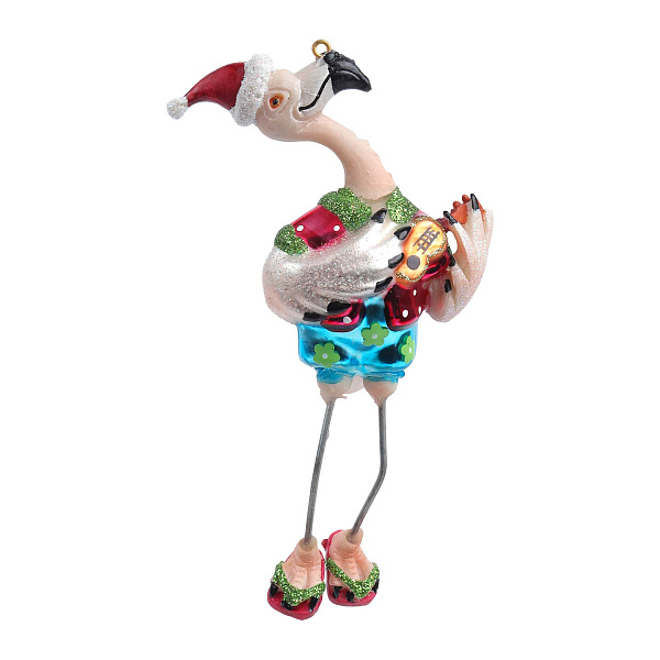 Украшение елочное Фламинго гитарист разноцветный стекло 14см
