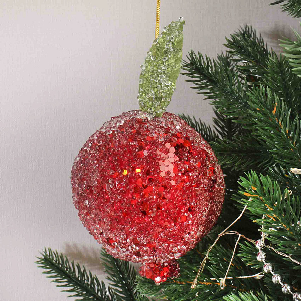 Украшение елочное Гранат с заледеневшем эффектом красный 9см