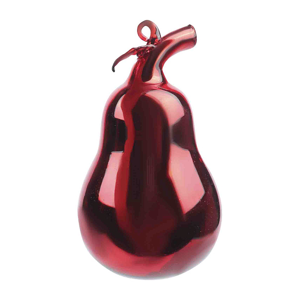 Украшение в виде красной груши выполнено в стиле лофт и станет оригинальным акцентом для праздничного декора. Изготовлено из стекла с гладкой глянцевой поверхностью, которая придает изделию элегантный и современный вид. Высота украшения составляет 12 см, что делает его компактным и удобным для размещения на елке или в композициях с другими декорациями. На верхушке украшения предусмотрено металлическое кольцо с серебристой ниткой для подвешивания.