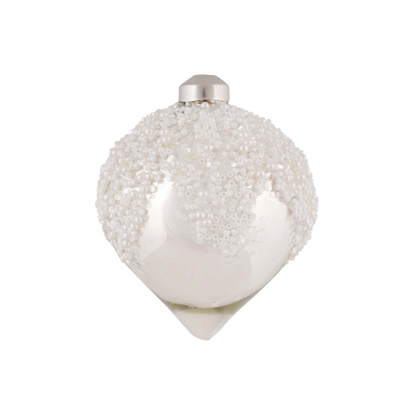 Украшение елочное луковица серебряная с бисером стеклянная 8,5см