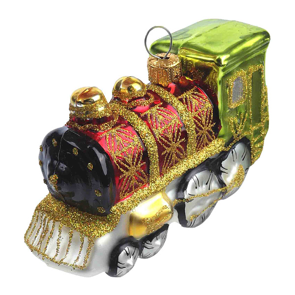 Новогодняя елочная игрушка в виде паровоза выполнена из стекла в классическом стиле. Высота изделия составляет 9 см. Игрушка отличается детализированной прорисовкой элементов и сочетанием ярких оттенков с блестящим покрытием, что придает ей особый праздничный вид. Изделие оснащено металлической петелькой с декоративной нитью для удобного подвешивания на елку. Эта игрушка станет оригинальным акцентом в новогоднем декоре и подарком для ценителей ретро.