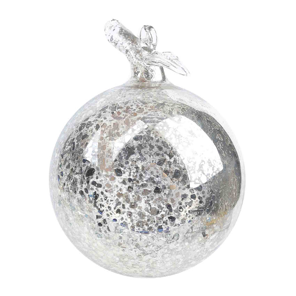 Елочное украшение «Апельсин» выполнено из стекла и выполнено в серебристом цвете. Украшение имеет диаметр 8 см, что делает его заметным и привлекательным элементом новогоднего декора. Фигурка имеет форму апельсина с текстурированной поверхностью, украшена веточкой и листиком, что добавляет изделию оригинальности.
