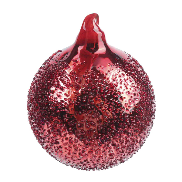 Елочный шар из коллекции «Лофт» выполнен из стекла в насыщенном красном цвете. Поверхность шара украшена текстурой в виде капель, создающей интересный визуальный эффект. Диаметр изделия составляет 8 см. Шар подвешивается на золотистую нить, что позволяет легко зафиксировать его на ветке елки.
