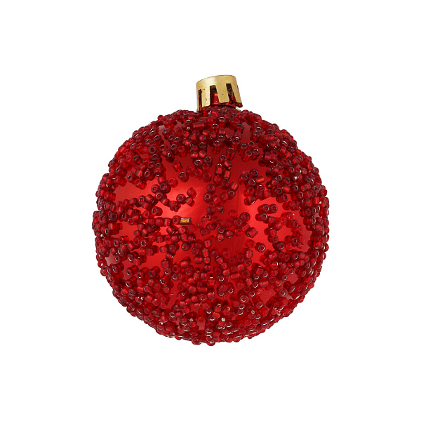 Этот прекрасный новогодний шар точно оценят все домочадцы. Игрушка в насыщенном красном оттенке густо усыпана качественным бисером. Она переливается на ёлке благодаря глянцевому основанию и эффектно дополняет яркое декорирование новогоднего интерьера. Такое изделие точно будет в тренде несколько сезонов. Его можно презентовать в качестве новогоднего подарка коллегам и друзьям.