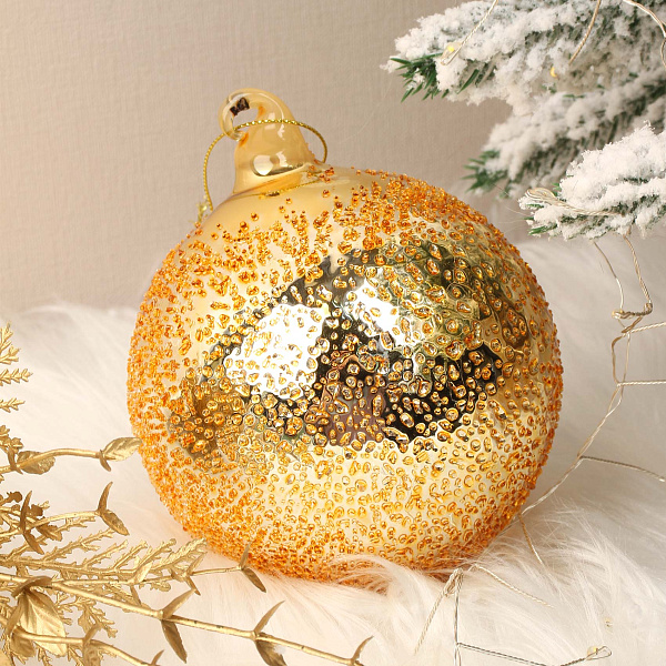 Украшение елочное Шар с эффектом росы золотой стекло 10см