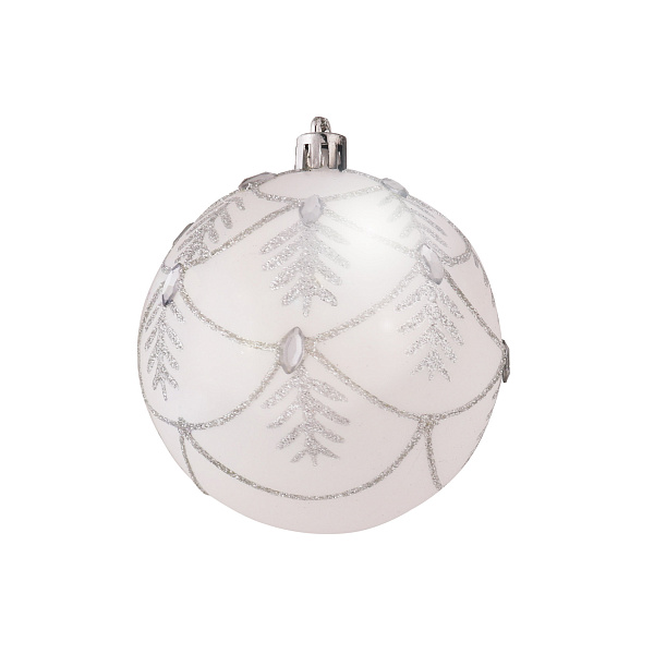 Классический елочный шар станет эффектным элементом наряда новогодней ели. Игрушка привлекает внимание стильным сочетанием белого и серебристого цвета. Нейтральный фон украшен фактурным тематическим узором, дополнен сверкающими стразами. Рельефное покрытие обеспечит таинственное мерцание. Изделие не останется незамеченным среди колючих веточек, порадует детей и взрослых.
