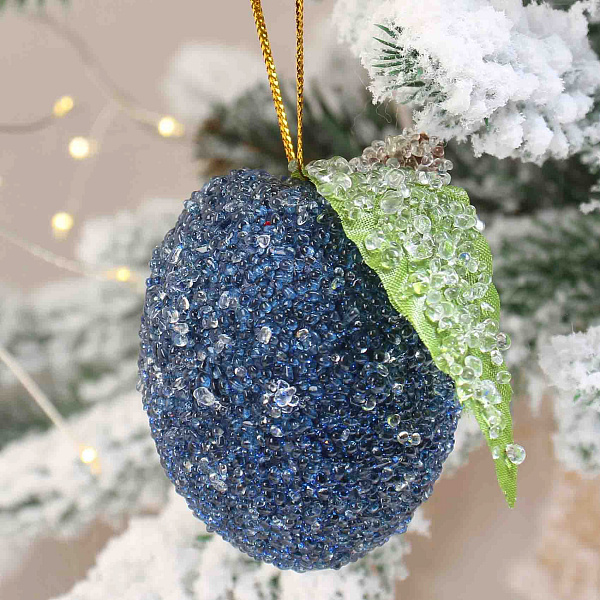 Синее украшение в форме сливы, выполненное в стиле шебби, станет ярким и эффектным акцентом в новогоднем или праздничном декоре. Изготовленное из прочного пластика, изделие покрыто множеством мелких прозрачных бусин, создающих искрящийся эффект, напоминающий капли росы на насыщенной синей поверхности фрукта. Тонкий текстильный листок добавляет натуральность и изящество композиции.
