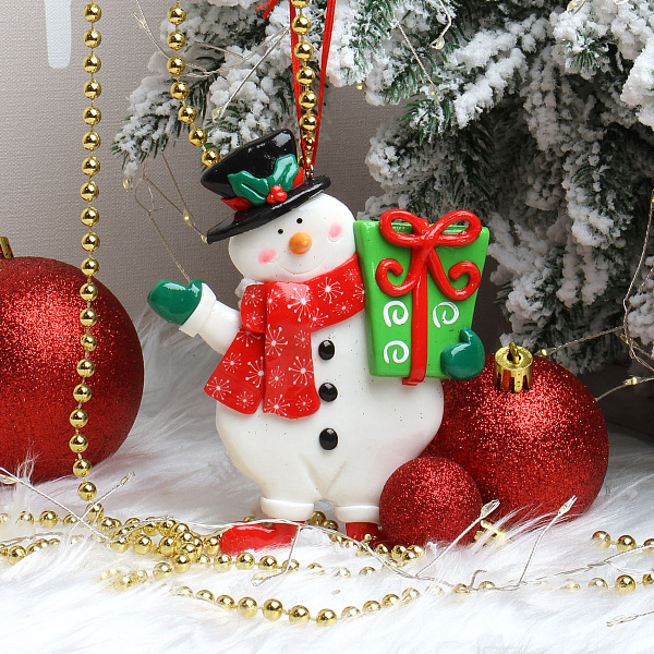 Украшение елочное Снеговик с Подарком разноцветный 11,5см