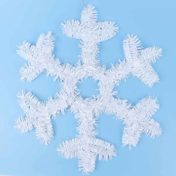Декор Снежинка пушистая из глянцевой мишуры белая 37см