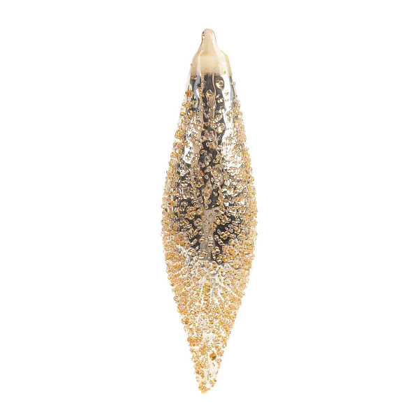 Украшение елочное Сосулька с эффектом росы золотая стеклянная 15см