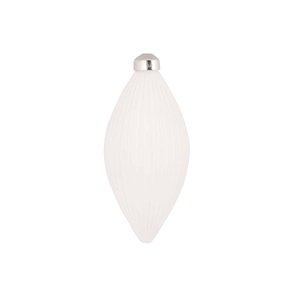 Внешне сосулька выглядит просто, но эта благородная простота создает особенный стиль. Поверхность игрушки составлена чередованием продольных ребер, создающих эффект настоящей сосульки. Цвет украшения – матовый молочно-белый. Такая игрушка хорошо сочетается с белыми шарами, но может создавать интересные композиции с украшениями других цветов.
